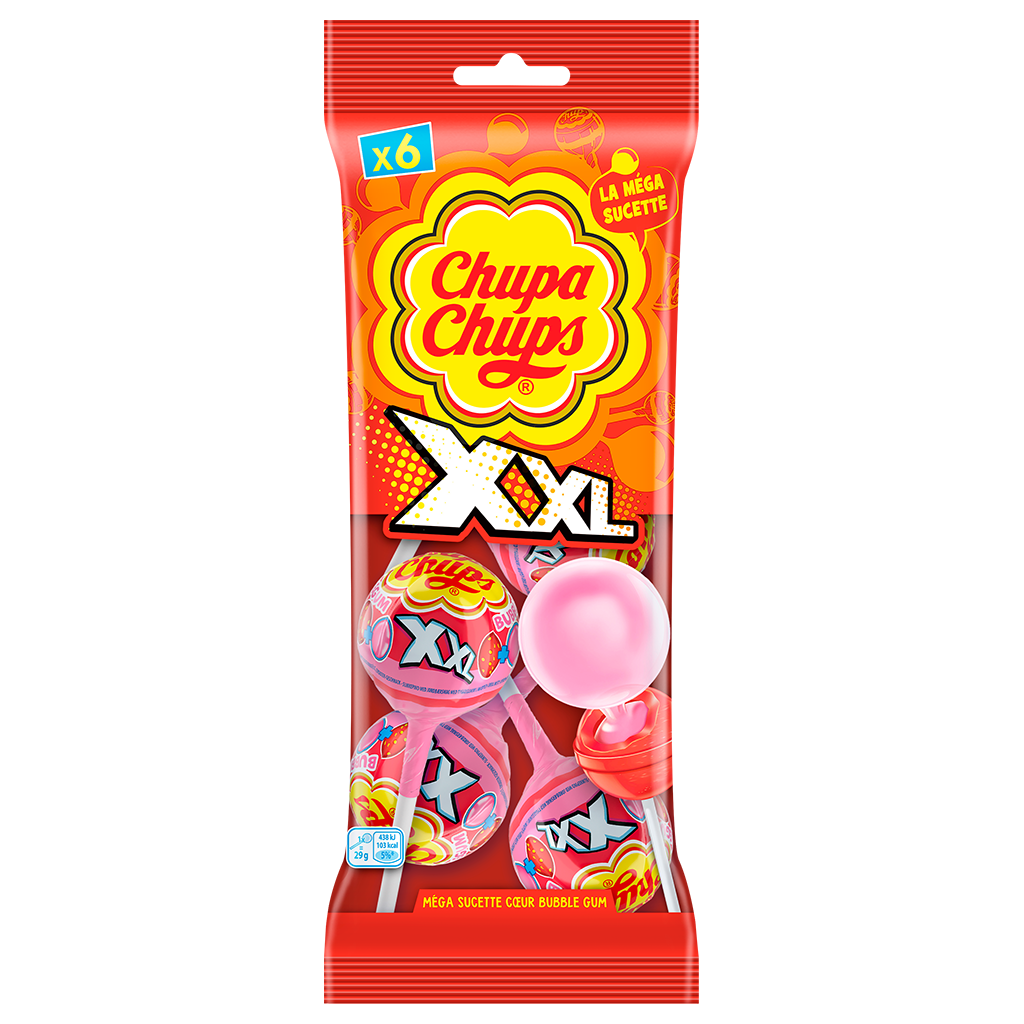 Un bonbon 2-en-1 pour 2 fois plus de plaisir ! Les célèbres sucettes Chupa Chups revisitées avec un bubble-gum goût tutti frutti à l'intérieur.